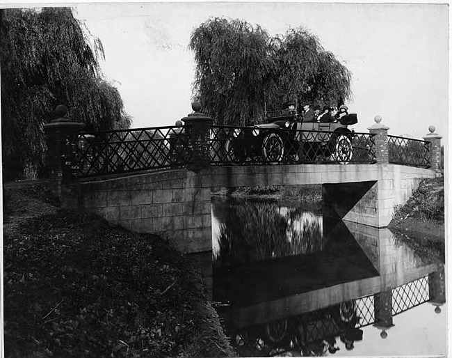 1914 Packard 2-38 salon touring car, driving on stone bridge over water