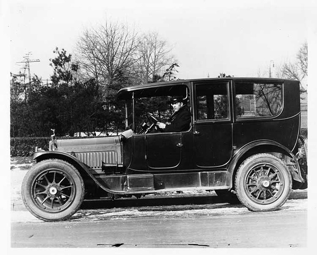 Still Image (1917)Part of Making of Modern Michigan1917 Packard limousine with male chauffeur, parked on street, left side view