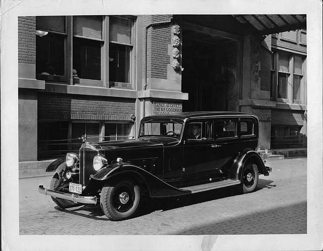 1933 Packard sedan limousine parked in front of the B.F. Goodrich Company