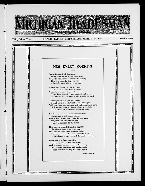 Michigan tradesman. Vol. 39 no. 2008 (1922 March 15)