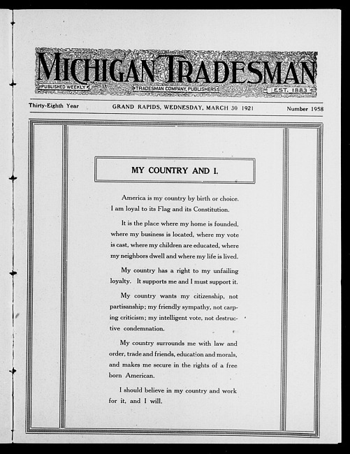 Michigan tradesman. Vol. 38 no. 1958 (1921 March 30)