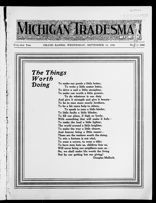 Michigan tradesman. Vol. 41 no. 2086 (1923 September 12)