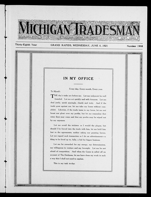 Michigan tradesman. Vol. 38 no. 1968 (1921 June 8)