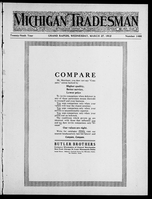 Michigan tradesman. Vol. 29 no. 1488 (1912 March 27)