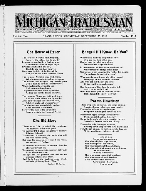 Michigan tradesman. Vol. 30 no. 1514 (1912 September 25)