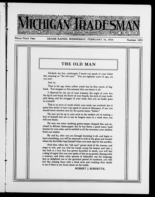 Michigan tradesman. Vol. 33 no. 1691 (1916 February 16)