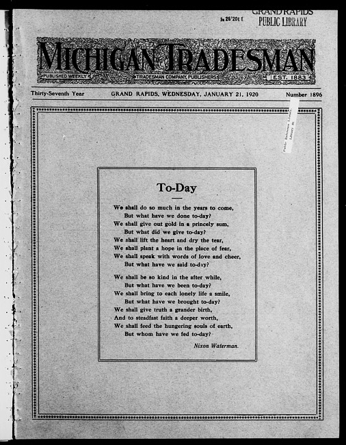 Michigan tradesman. Vol. 37 no. 1896 (1920 January 21)