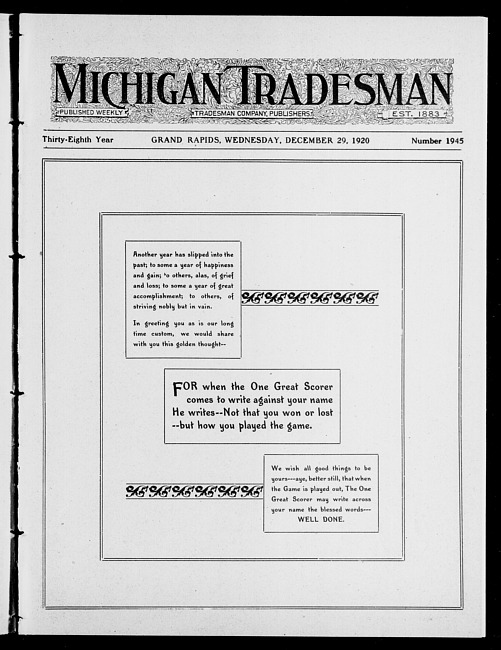 Michigan tradesman. Vol. 38 no. 1945 (1920 December 29)
