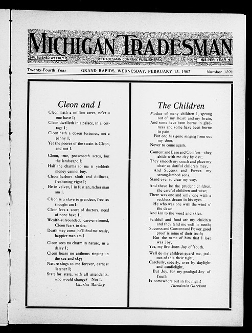 Michigan tradesman. Vol. 24 no. 1221 (1907 February 13)