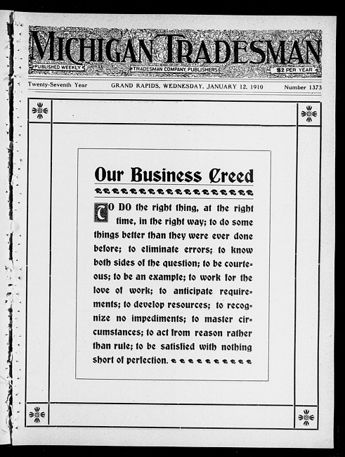 Michigan tradesman. Vol. 27 no. 1373 (1910 January 12)