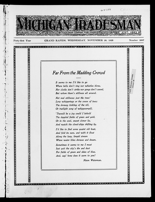 Michigan tradesman. Vol. 41 no. 2097 (1923 November 28)