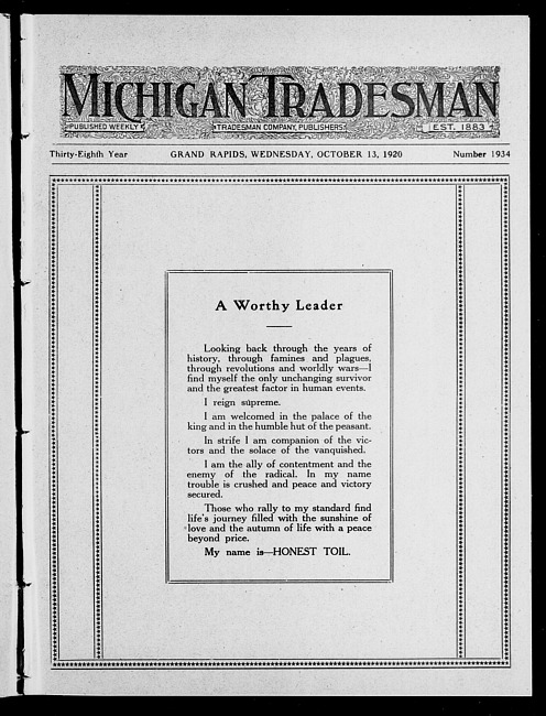 Michigan tradesman. Vol. 38 no. 1934 (1920 October 13)