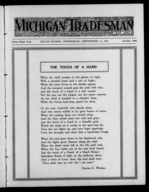 Michigan tradesman. Vol. 39 no. 1982 (1921 September 14)