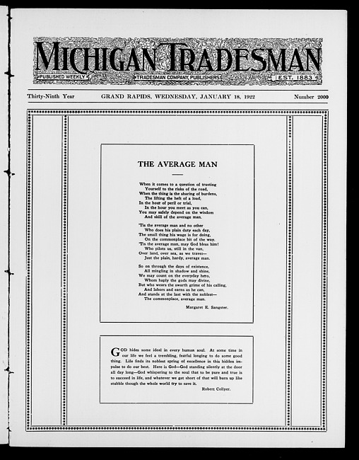 Michigan tradesman. Vol. 39 no. 2000 (1922 January 18)
