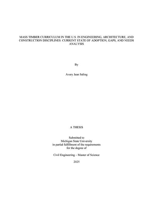MASS TIMBER CURRICULUM IN THE U.S. IN ENGINEERING, ARCHITECTURE, AND CONSTRUCTION DISCIPLINES : CURRENT STATE OF ADOPTION, GAPS, AND NEEDS ANALYSIS