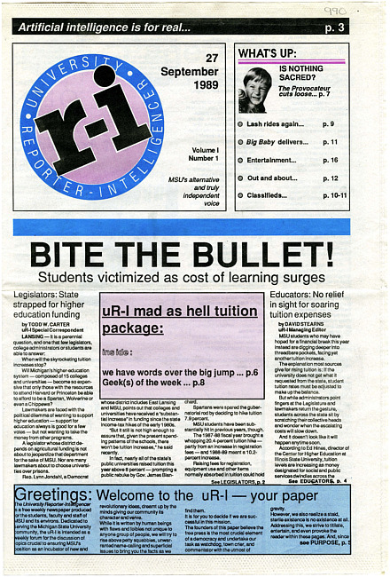 University reporter-intelligencer. Vol. 1 no. 1 (1989 September 27)