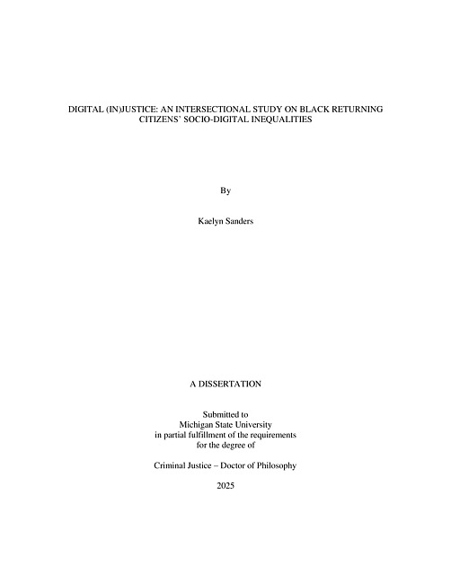 DIGITAL (IN)JUSTICE : AN INTERSECTIONAL STUDY ON BLACK RETURNING CITIZENS’ SOCIO-DIGITAL INEQUALITIES