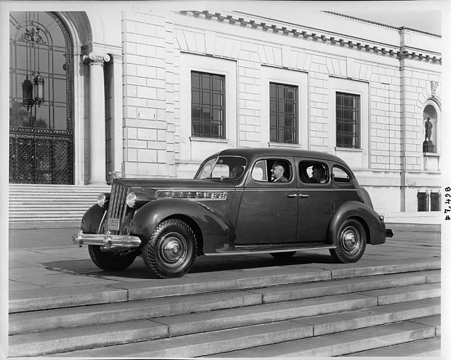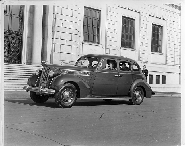 1939 Packard touring sedan in front of the Detroit Institute of Arts