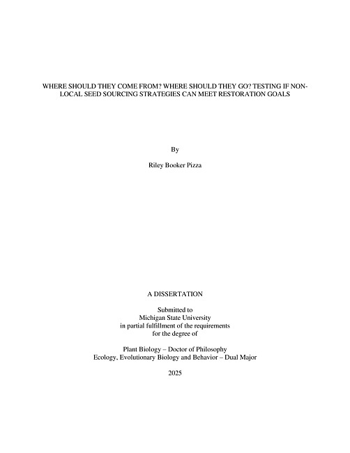 WHERE SHOULD THEY COME FROM? WHERE SHOULD THEY GO? TESTING IF NON-LOCAL SEED SOURCING STRATEGIES CAN MEET RESTORATION GOALS