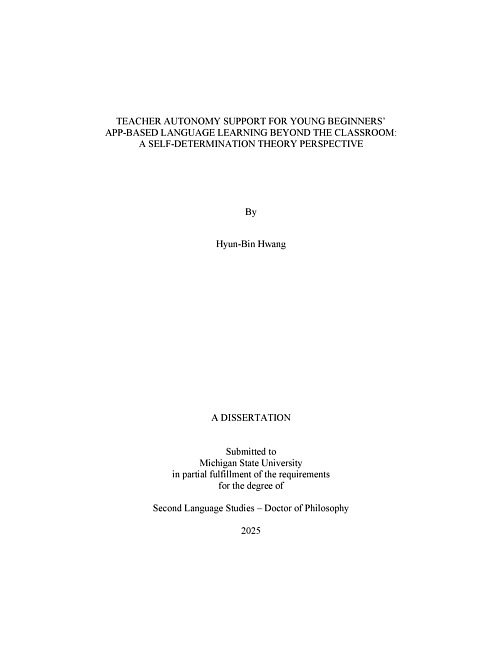 TEACHER AUTONOMY SUPPORT FOR YOUNG BEGINNERS’ APP-BASED LANGUAGE LEARNING BEYOND THE CLASSROOM : A SELF-DETERMINATION THEORY PERSPECTIVE