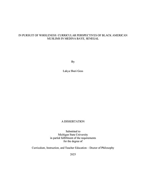 In pursuit of wholeness : Curricular perspectives of Black American Muslims in Medina Baye, Senegal