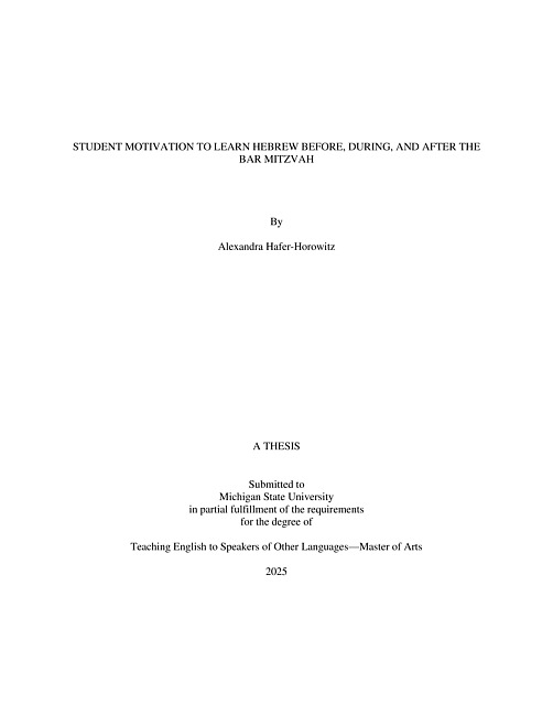 STUDENT MOTIVATION TO LEARN HEBREW BEFORE, DURING, AND AFTER THE BAR MITZVAH