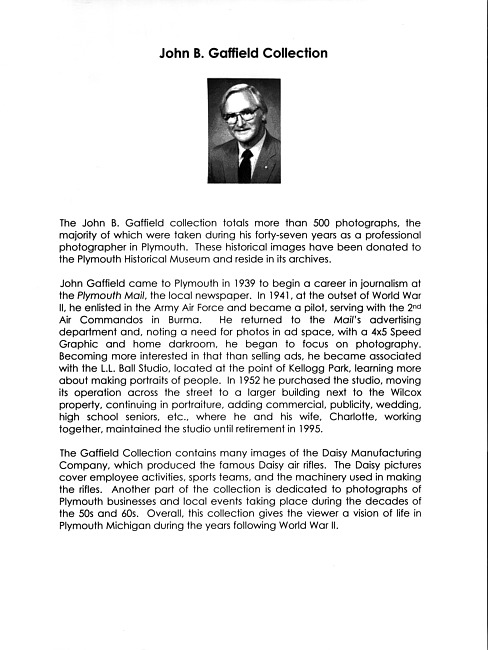 Gaffield Photography Studio, Ann Arbor Trail, Plymouth Mich