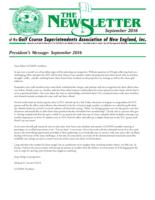 The newsletter of the Golf Course Superintendents Association of New England, Inc. (2016 September)