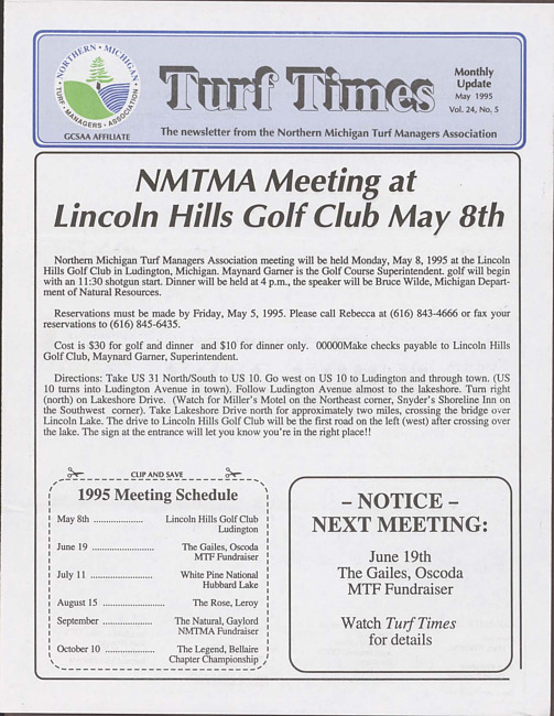 Northern Michigan Turf Managers Association newsletter. Vol. 16 no. 4 (1987 December)