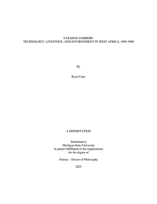 Fasahan Dabbobi : Technology, Livestock, and Environment in West Africa, 1890-1980