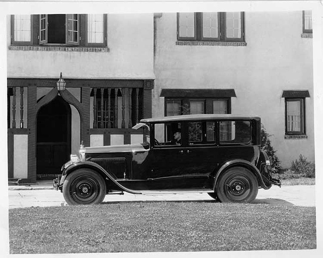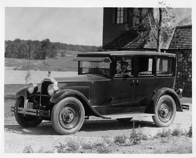 Still Image (1925)Part of Making of Modern Michigan1925 Packard sedan, left side view, male chauffeur, parked in front of large home