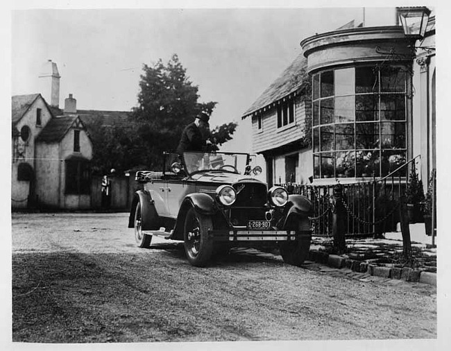 1927 Packard two-toned phaeton, owner Charles M. Schwab standing in back