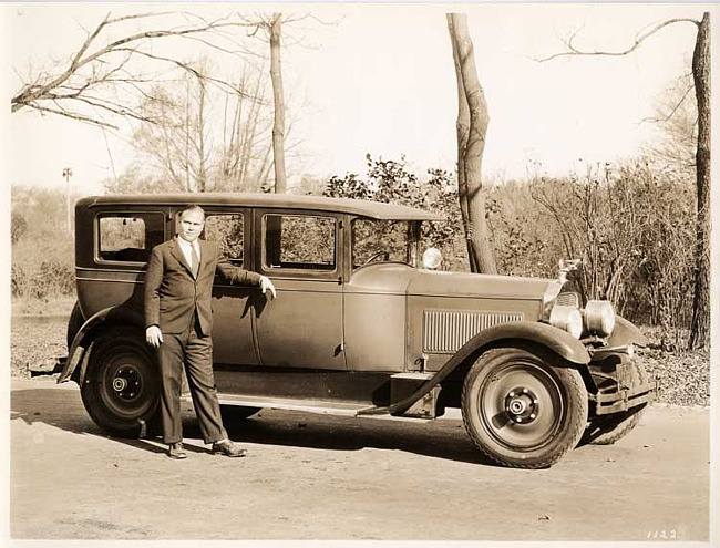 Still Image (1927)Part of Making of Modern Michigan1927 Packard sedan, owner William Mather Lewis standing at passenger door