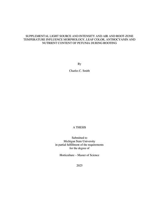 SUPPLEMENTAL LIGHT SOURCE AND INTENSITY AND AIR AND ROOT-ZONE TEMPERATURE INFLUENCE MORPHOLOGY, LEAF COLOR, ANTHOCYANIN AND NUTRIENT CONTENT OF PETUNIA DURING ROOTING