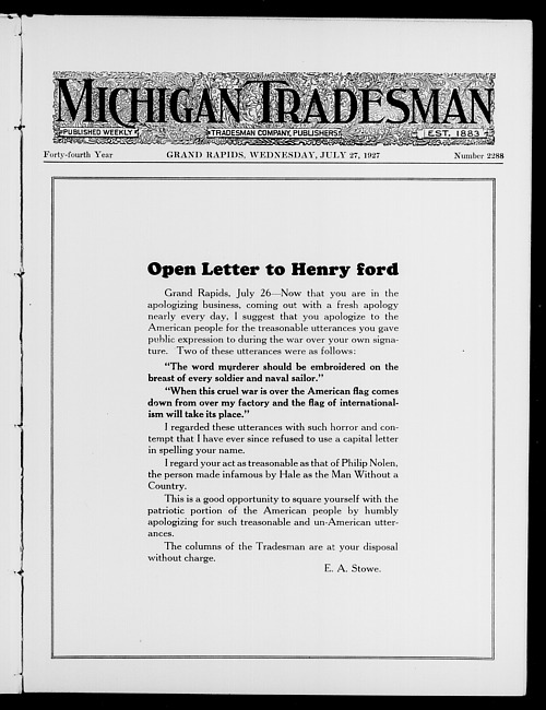 Michigan tradesman. Vol. 44 no. 2288 (1927 July 27)