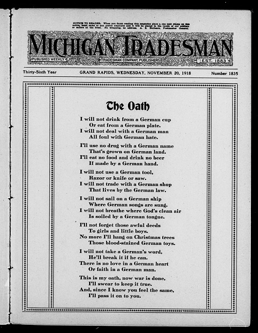 Michigan tradesman. Vol. 36 no. 1835 (1918 November 20)