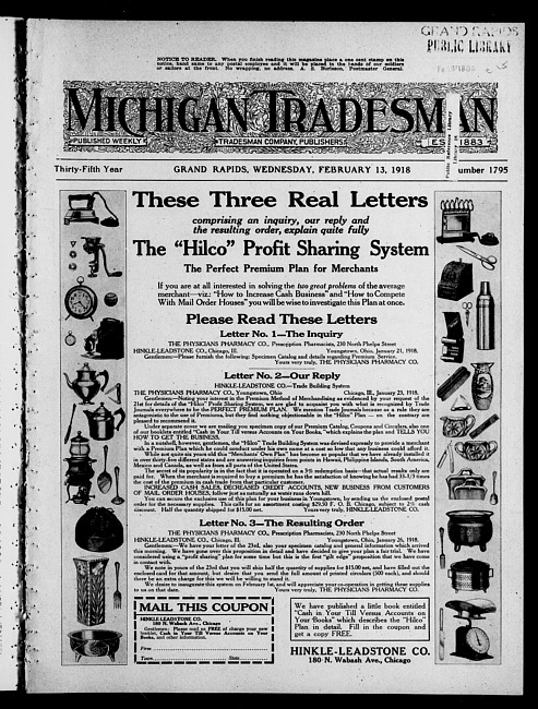 Michigan tradesman. Vol. 35 no. 1795 (1918 February 13)