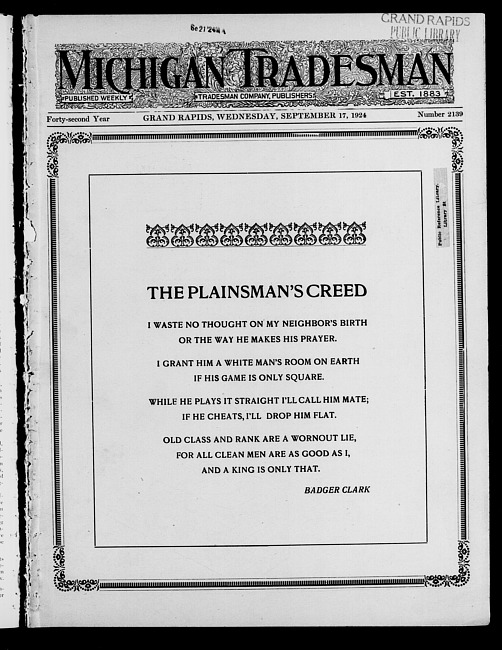 Michigan tradesman. Vol. 42 no. 2139 (1924 September 17)
