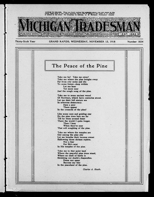 Michigan tradesman. Vol. 36 no. 1834 (1918 November 13)