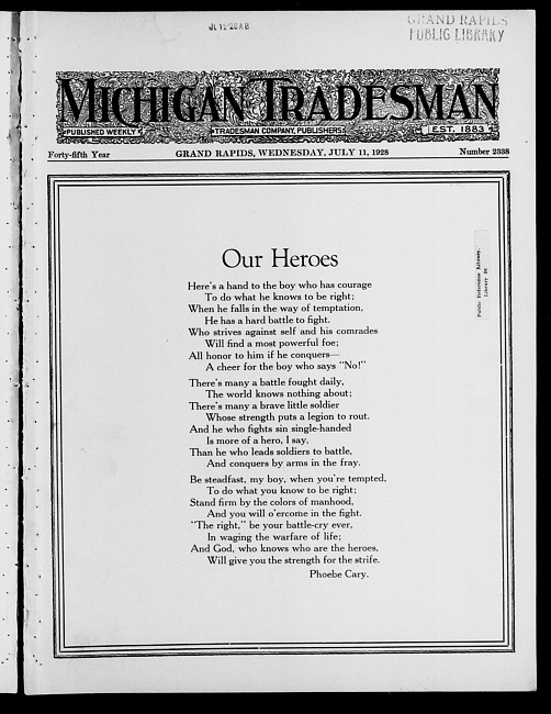 Michigan tradesman. Vol. 45 no. 2338 (1928 July 11)