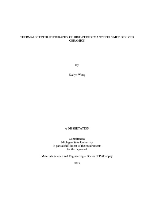 THERMAL STEREOLITHOGRAPHY OF HIGH-PERFORMANCE POLYMER DERIVED CERAMICS