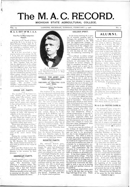 The M.A.C. record. Vol. 13 no. 19 (1908 February 4)