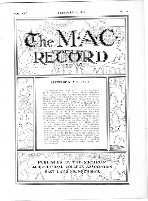 The M.A.C. record. Vol. 21 no. 19 (1916 February 15)