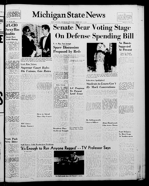 Michigan State news. (1958 February 4)