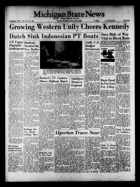 Michigan State news. (1962 January 16)