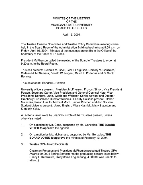 Meeting minutes, April 16, 2004