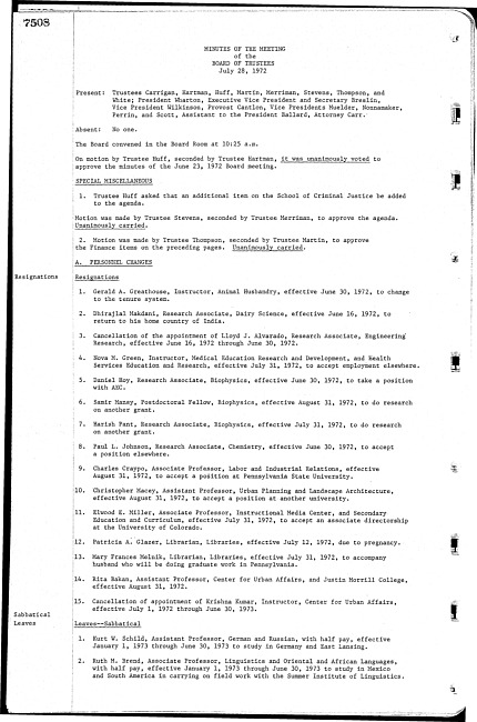 Meeting minutes, July 28, 1972