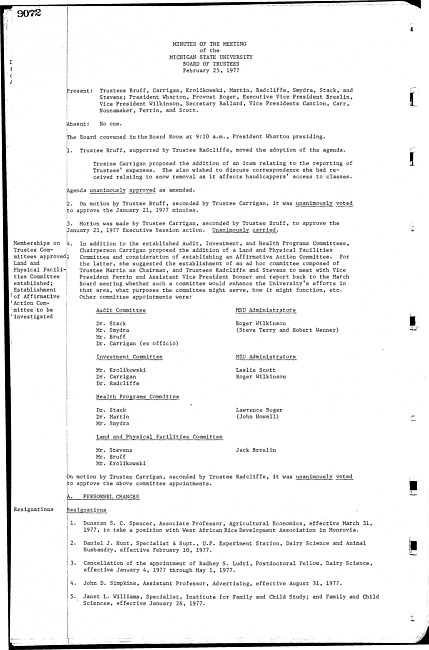 Meeting minutes, February 25, 1977