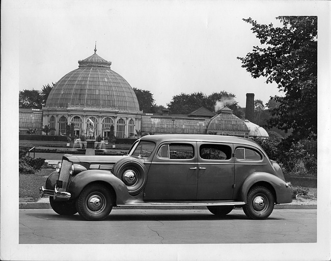 Still Image (1938)Part of Making of Modern Michigan1938 Packard touring sedan parked in front of Belle Isle conservatory
