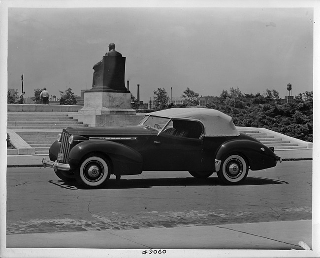 1938 Packard convertible coupe in front of the Detroit River on Belle Isle